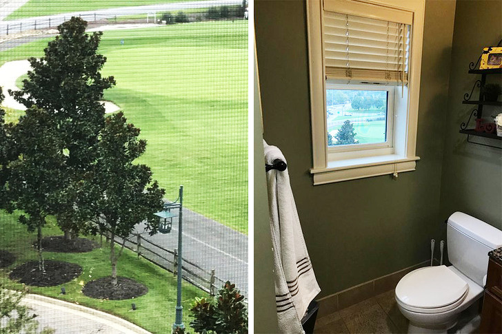 2. This hotel room boasts "a room with a view", but only if you're in the bathroom
