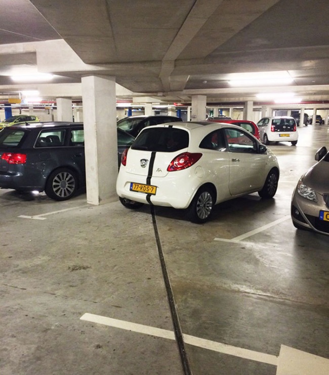 1. When a line on a parking lot floor perfectly 'lines up' with the one on the car