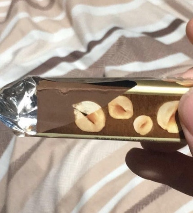 9. When the wrapper perfectly matches the nuts in this bar of chocolate
