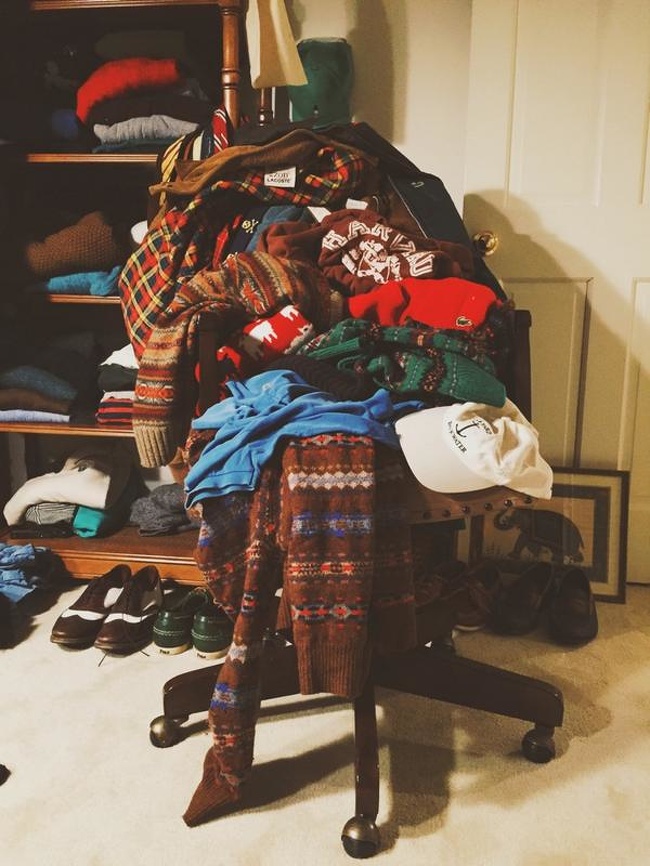 16. Piling up our clothes