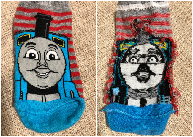 19. Checking out what our socks look like on the inside