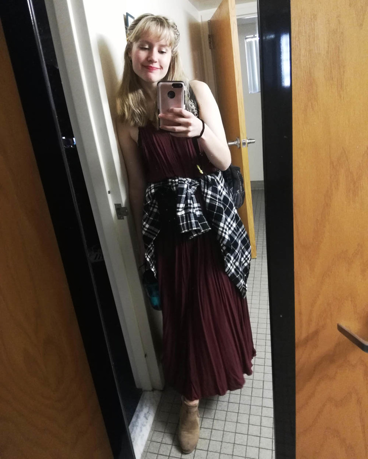 17. This girl goes to a private school where richer kids often throw out designer clothes