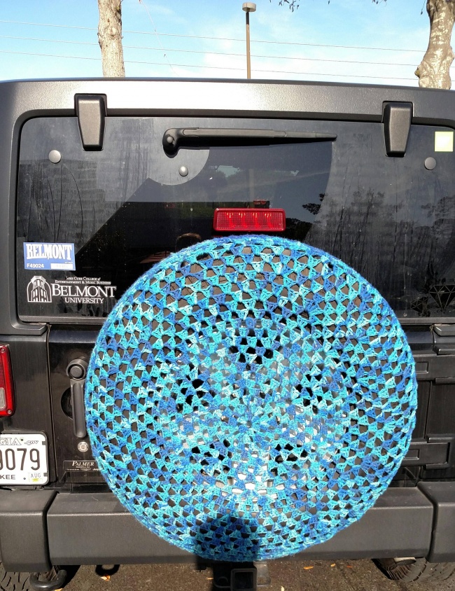 7. When a grandma crochets a cover for her son's spare tire!