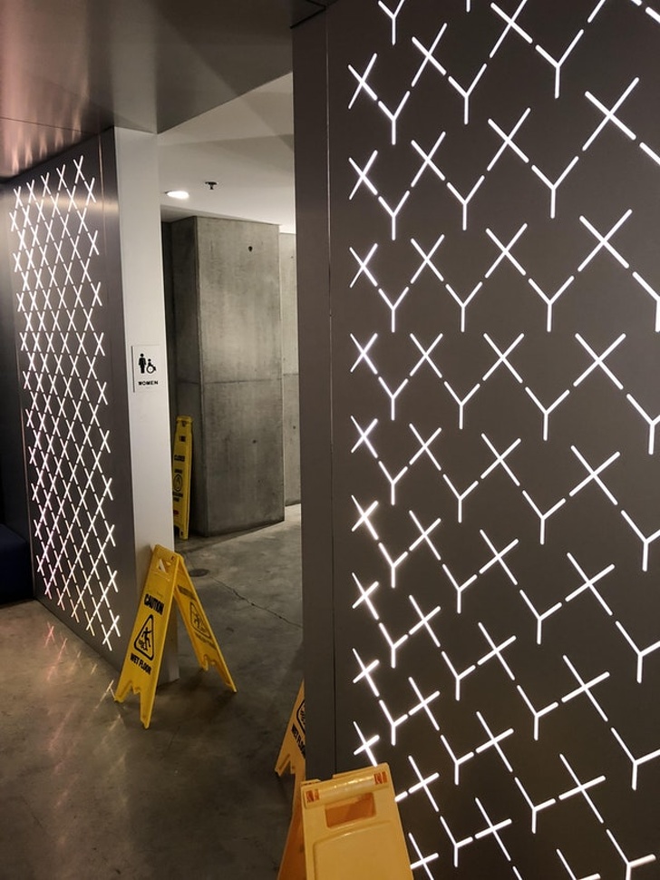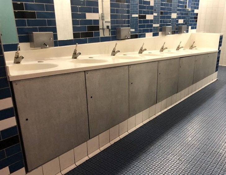 13. In this London museum bathroom, the sinks slope to adapt to people of all heights!