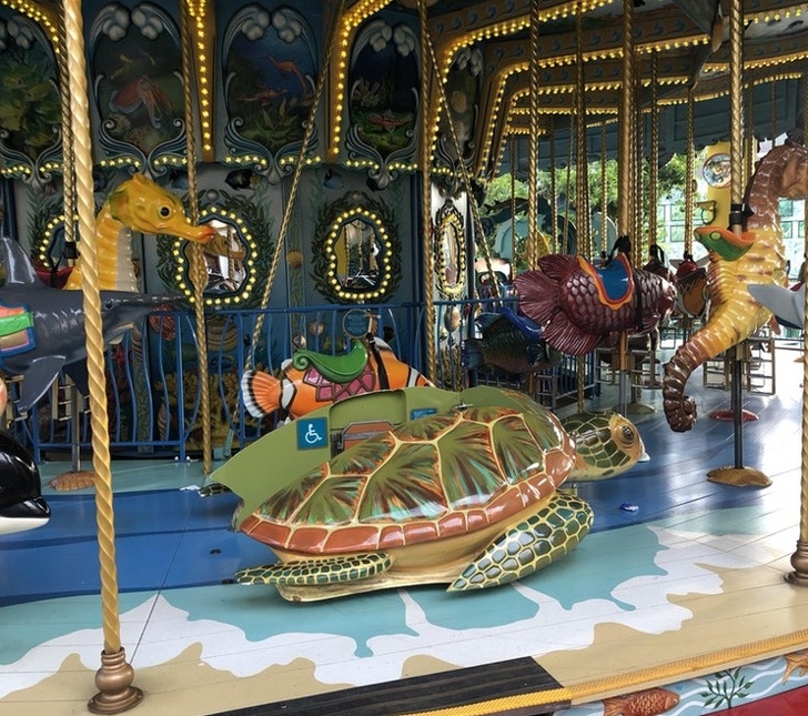 18. This carousel in Hong Kong lets disabled children ride on a sea turtle.