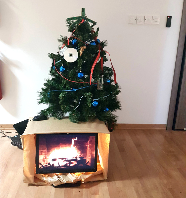 19. Get into the Christmas spirit by using a laptop and TV to create a cozy fireplace