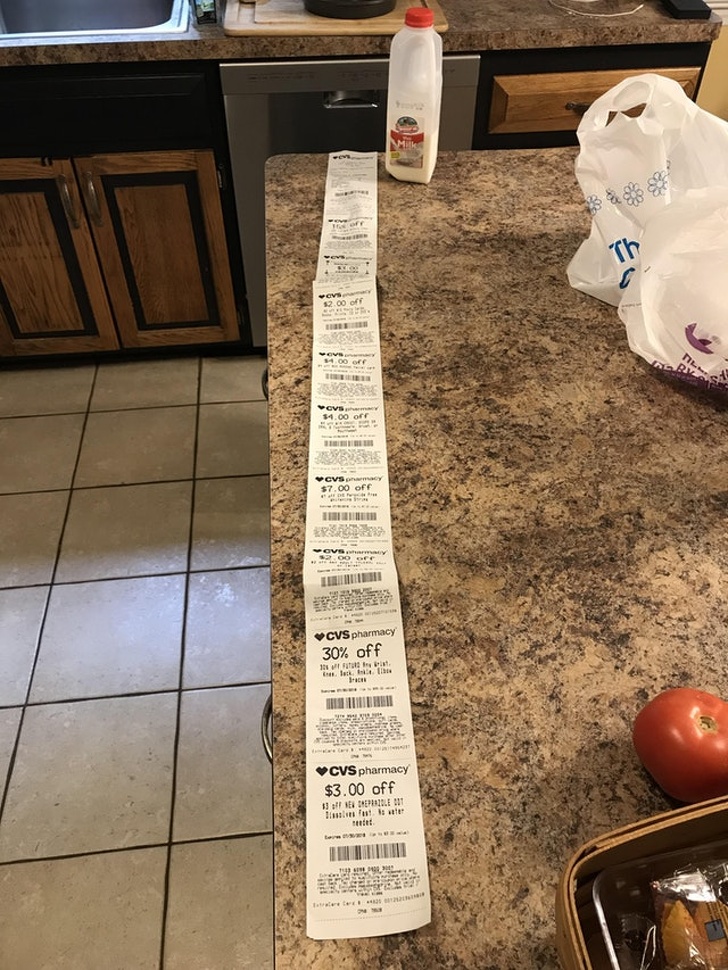 14. One very long receipt for one bottle of milk