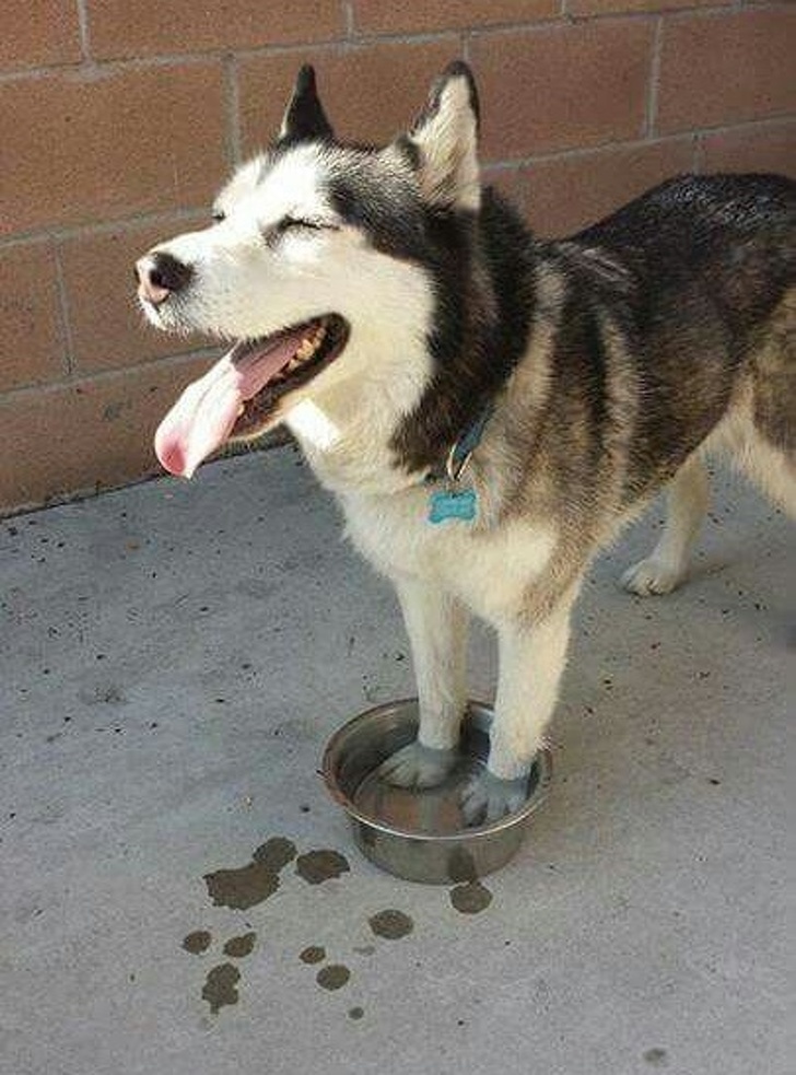 3. Nothing's better than soaking your paws in a bowl of cold water