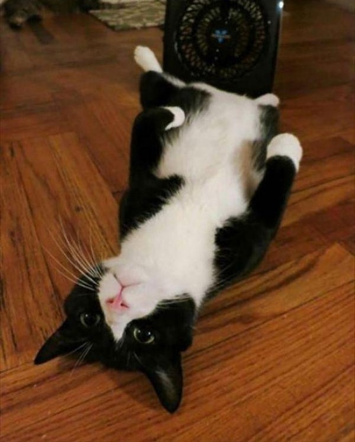 10. This cat spent all day flaked out in front of a fan