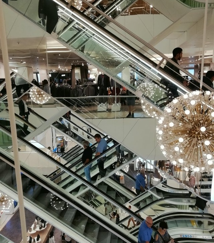 7. There are a few too many escalators in this store, or the mirrors are playing tricks on us.