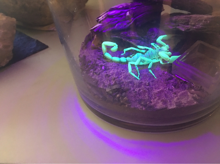 10. Albino scorpions glow under ultraviolet light!