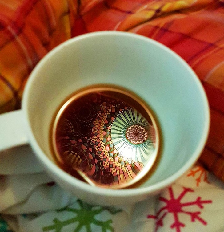 16. Tapestry reflecting off coffee!