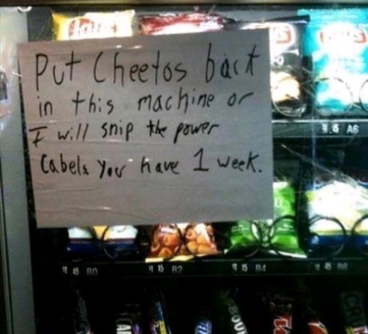 15. If he writes a message like this on a machine, he’ll do anything! A threat to take seriously!
