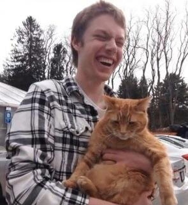 5. A young blind man holds a cat for the first time