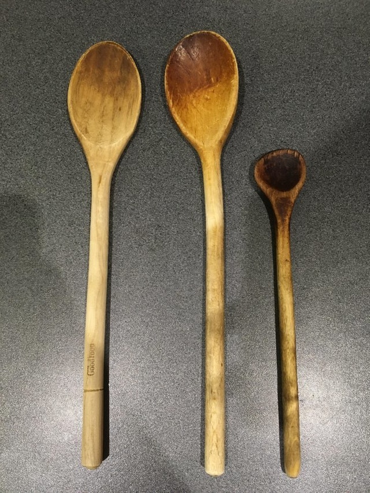 4. A grandma's 50 year-old wooden spoon next to the ones owned by her daughter and granddaughter