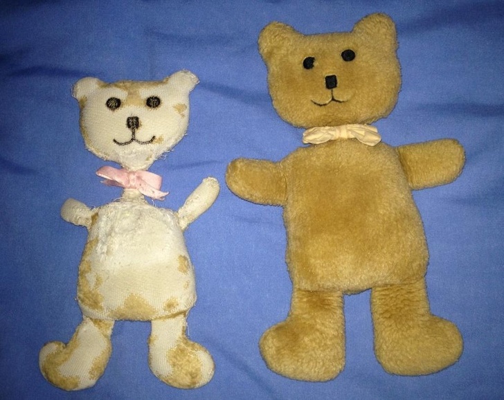 3. This brother and sister were given the same teddy bear 18 years ago... Guess which one got the most hugs!