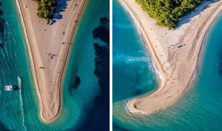 10. The beach at Zlatni Rat in Croatia before and after a storm