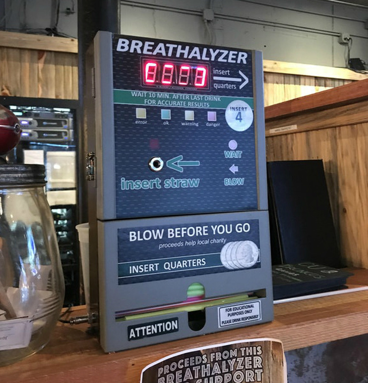 14. This restaurant has a breathalyzer machine so you can verify that you're below the drink-drive limit before using your car!