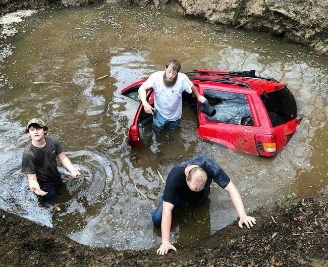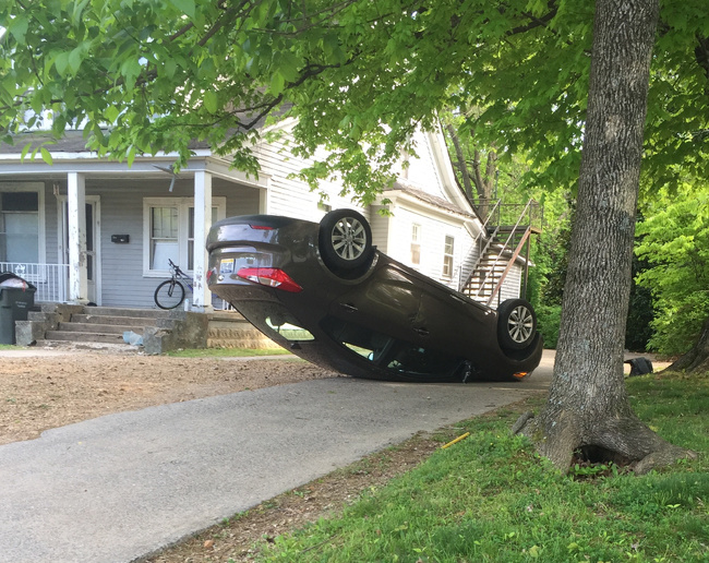 5. After a tornado had past, this guy found his neighbor's car upside down on his driveway