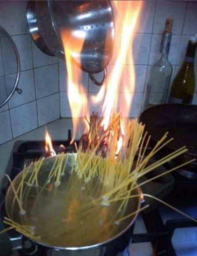 1. When your pasta catches fire