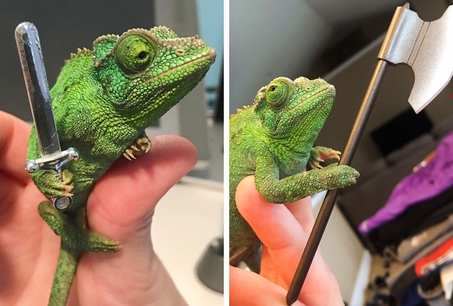 8. Chameleons will hang on to anything - dangerous weapons included!
