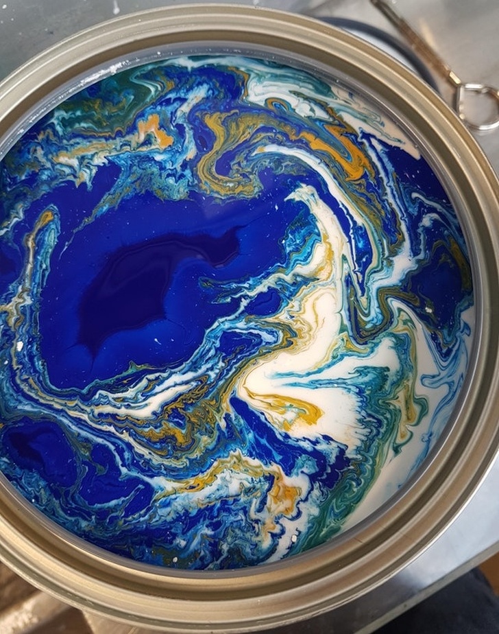 18. Looks like a distorted Earth, but it's paint before being mixed.