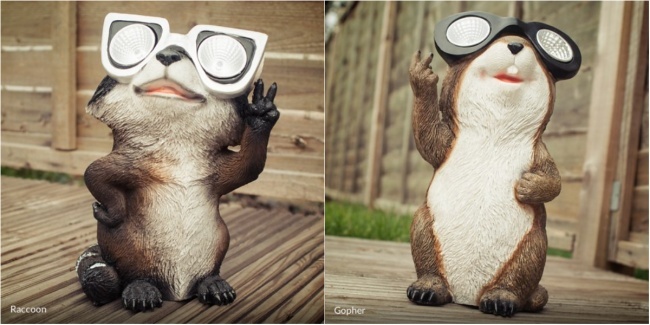 If you love animals and spending time in your garden, then invest in these solar-powered raccoon and groundhog lights. We love the way the lights are integrated into their glasses!
