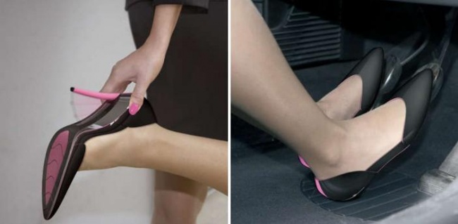 Sheila's Wheels are practical shoes for drivers. Take their heels off to drive in comfy pumps and then simply re-attach them when you arrive at your destination. An elegant design that has safety in mind!