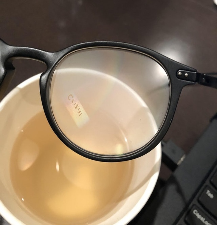 13. This appeared on these glasses when they got steamed up from a cup of tea