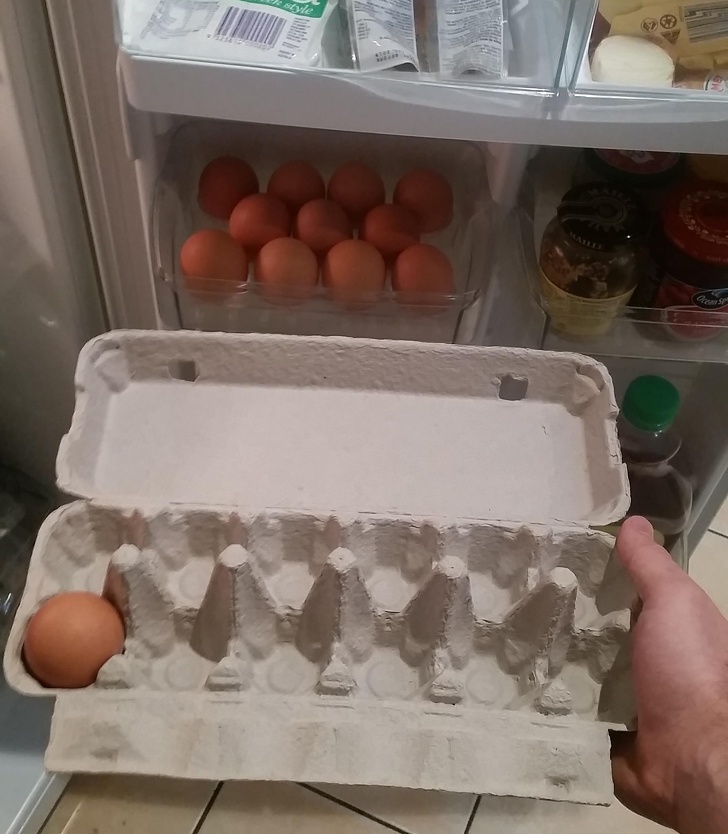 3. When eggs are sold by the dozen, but your fridge only has room for eleven