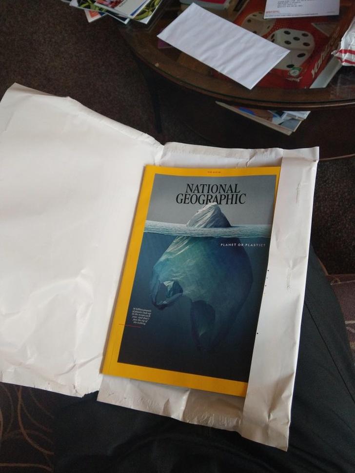 19. A National Geographic about pollution, wrapped in paper rather than plastic
