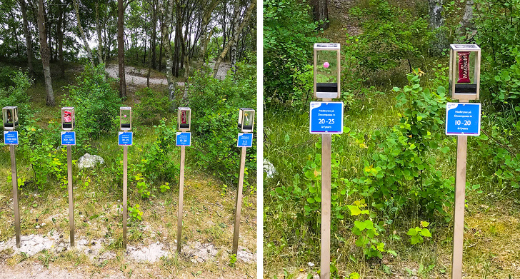 14. A beach with signs telling you how long it take for waste to biodegrade
