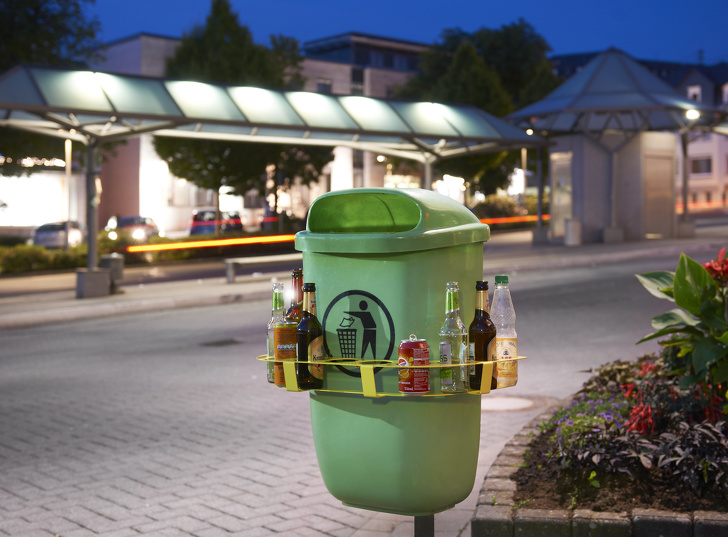 5. A litter bin that has holes for glass bottles