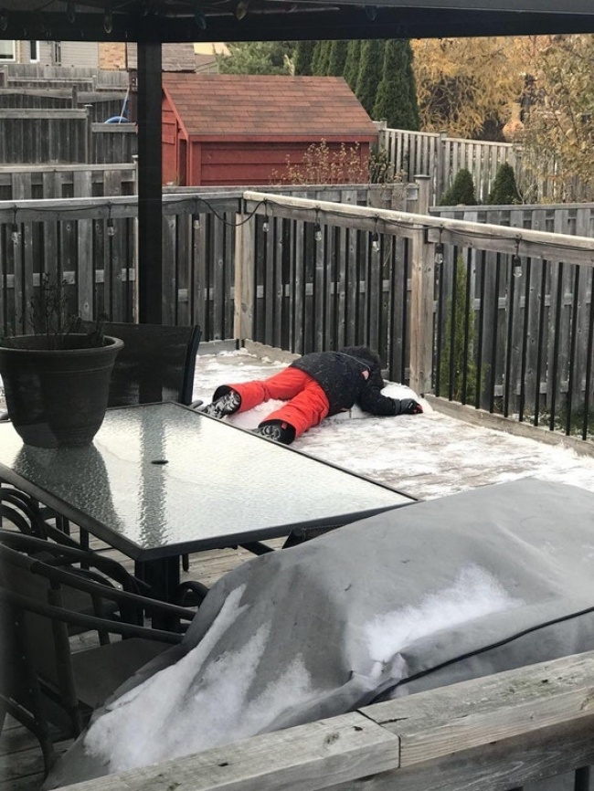 10. "My nephew lives in Dubai and he came to my house for the holidays. He saw snow for the first time, insisted on going out to play in it, and here’s how I found him... "