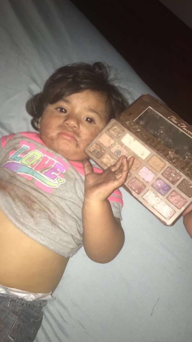 20. "My daughter managed to grab my Two Faced Chocolate makeup palette and ate all my makeup because it smelled like chocolate... I don’t know if I should laugh or cry."