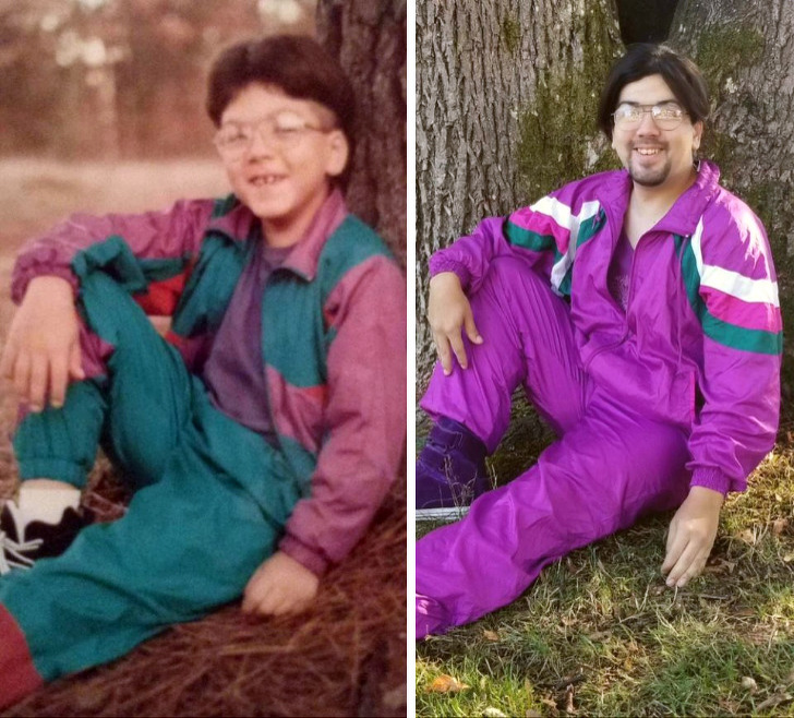 1. “I found this tracksuit in a thrift store and tried to recreate a picture from my childhood.”