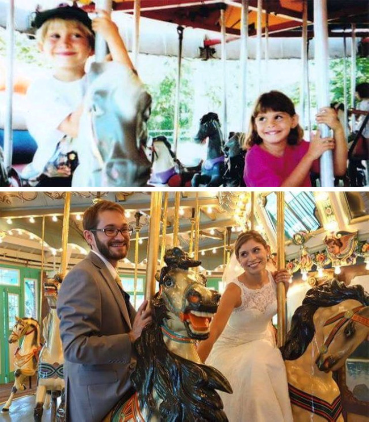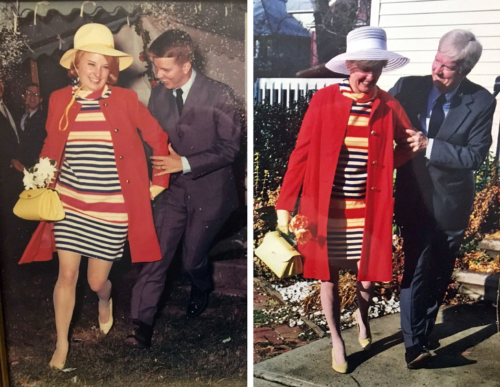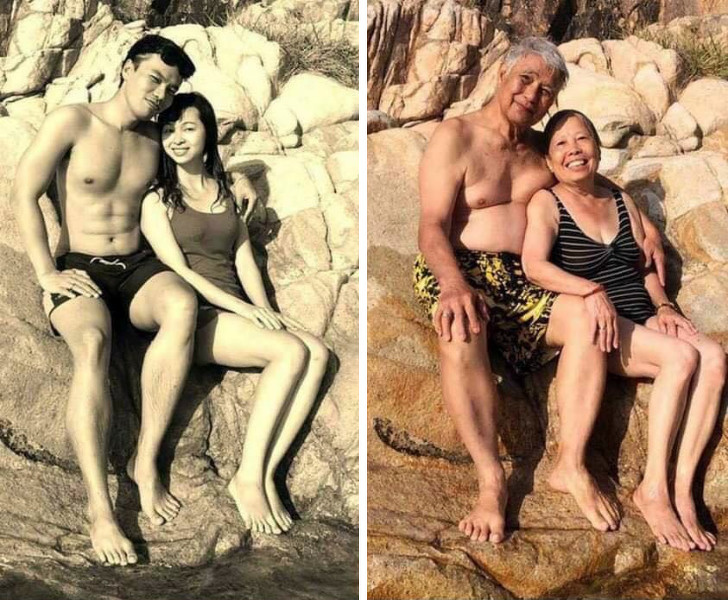 19. “My parents decided to recreate their honeymoon photo... 40 years later!”