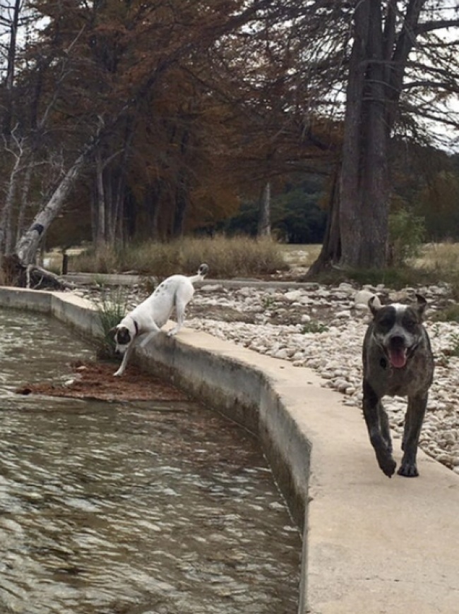 13. Uh oh! This dog doesn't realize the leaves are floating on water...