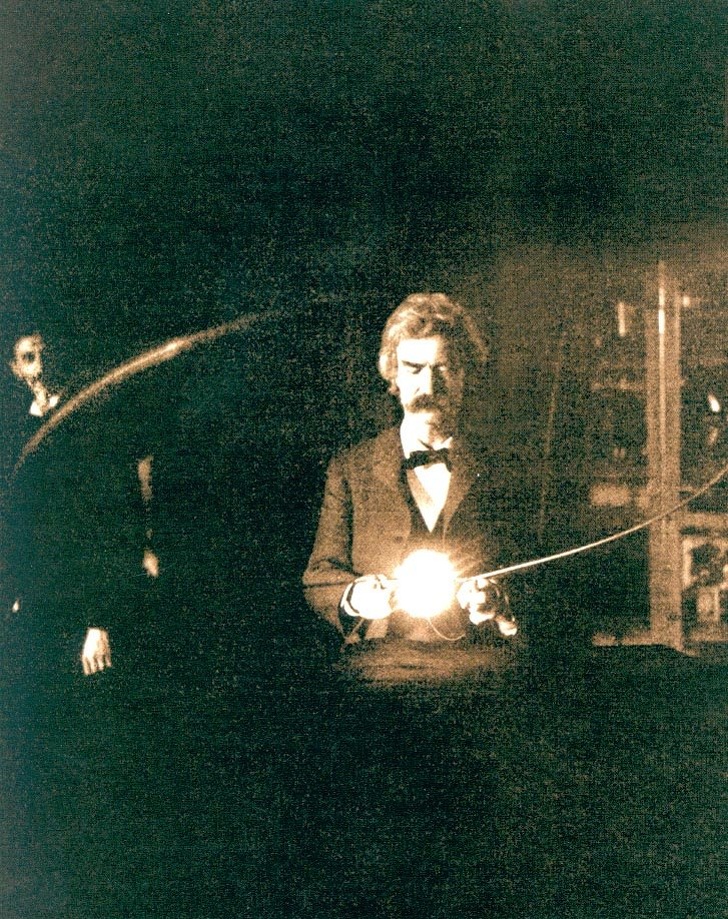 18. Mark Twain in Nikola Tesla's laboratory, 1894