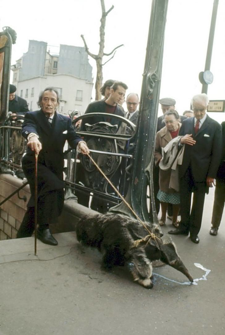 2. Salvador Dali and his pet anteaters, in the middle of Paris in 1969