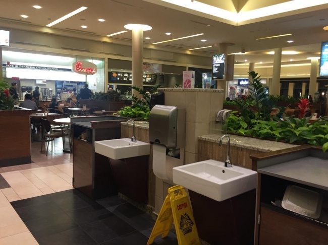 20. A highway service area complete with numerous washbasins so you can wash your hands without heading to the restroom