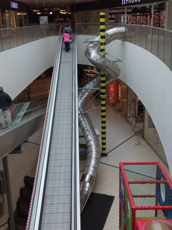 4. Visitors to this shopping mall in Prague have the choice between an escalator or a slide