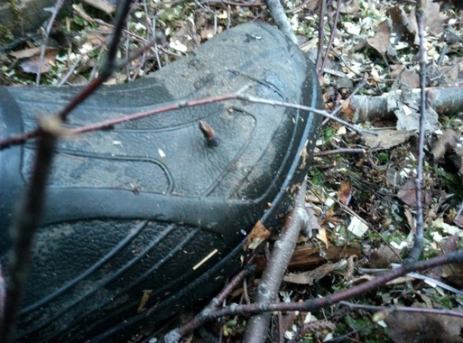 6. Presumably no life was put in danger, but when this knife was thrown, it was the handle that got planted into this log!