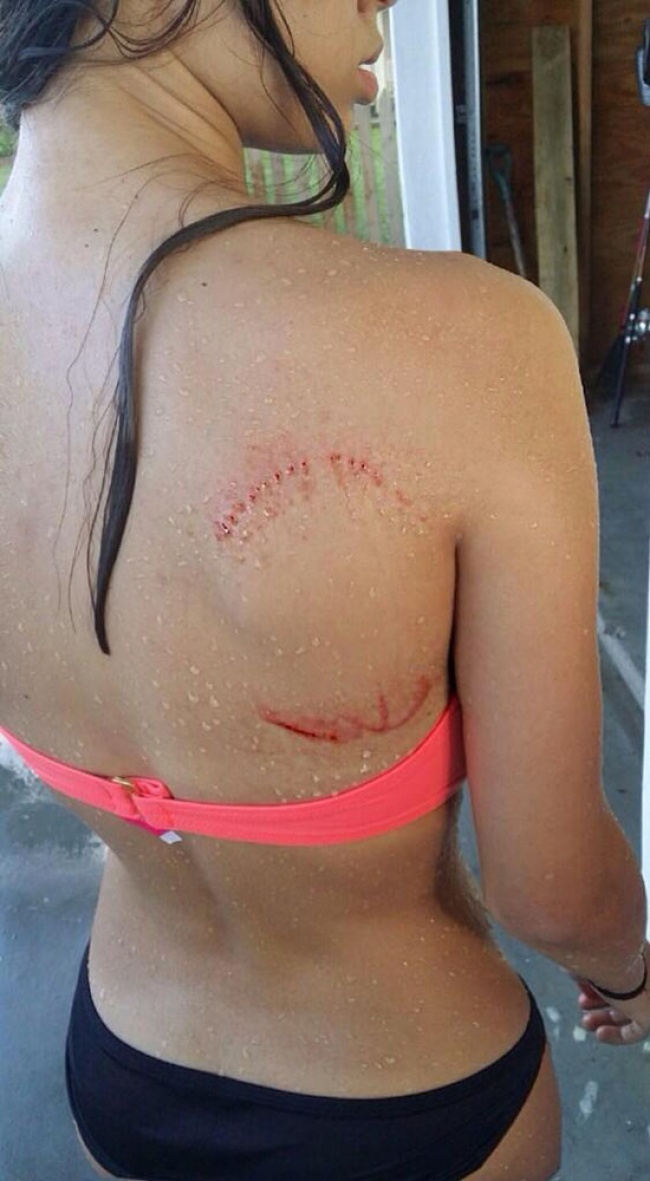 7. This lady was bitten by a small shark - that didn't come back for second helpings!