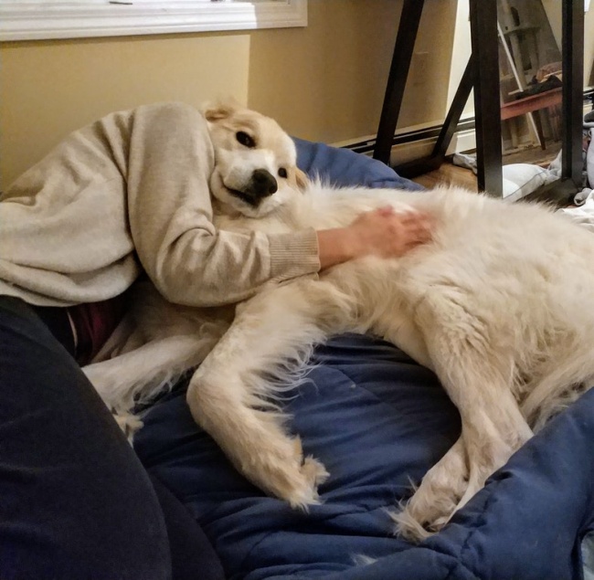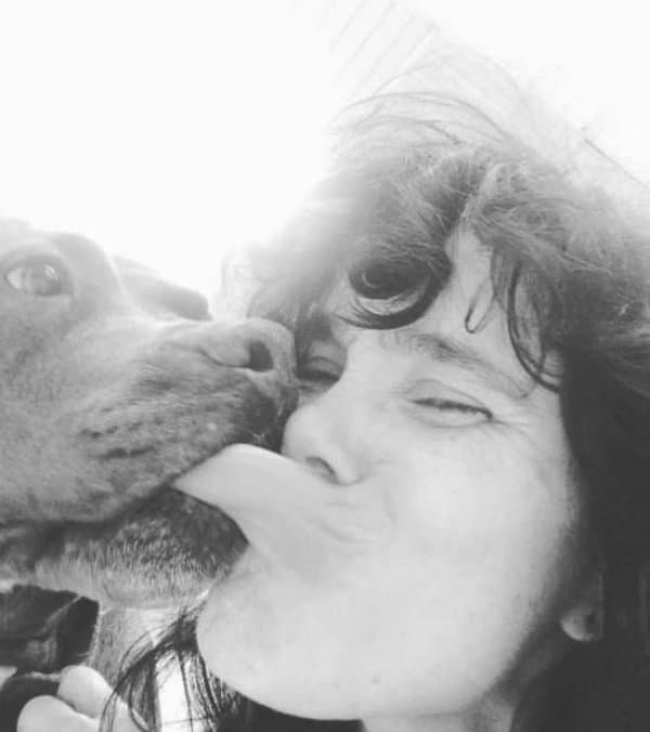 6. Don't worry, the dog's not chewing her face off... Look closer and you'll see he's just giving her a friendly lick!