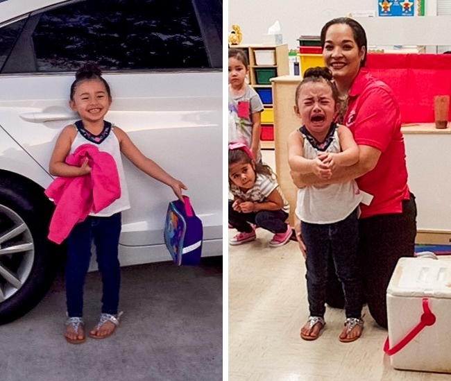 4. This girl was really excited about starting school... Until she found out that her mom couldn't stay in the class