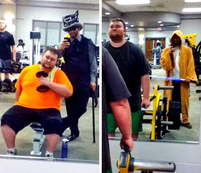 24. This guy felt ashamed when he went to the gym, so his buddies decided to give him some moral support!