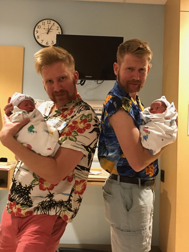 22. “Our sister had twins, and everyone knows that the first pictures are forever. So, we decided to do our hair, shave, and dress for the occasion.”