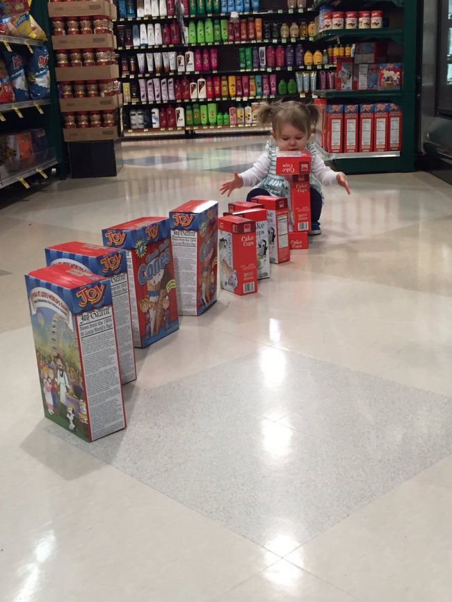 15. When your toddler decides to play 'building blocks' whilst you shop