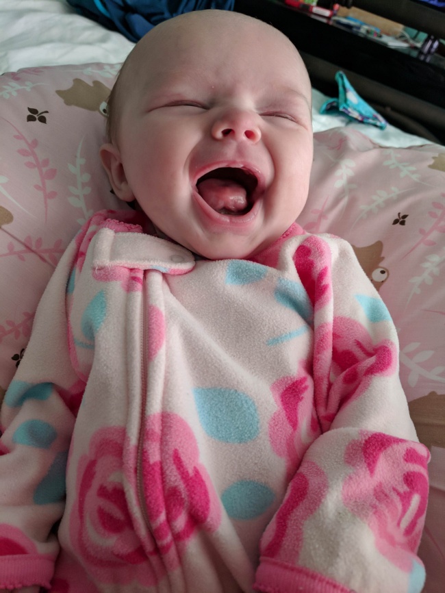16. When your 2 1/2 month-old daughter slept for 8 1/2 hours during the night and greeted you the next morning with this yawny smile!